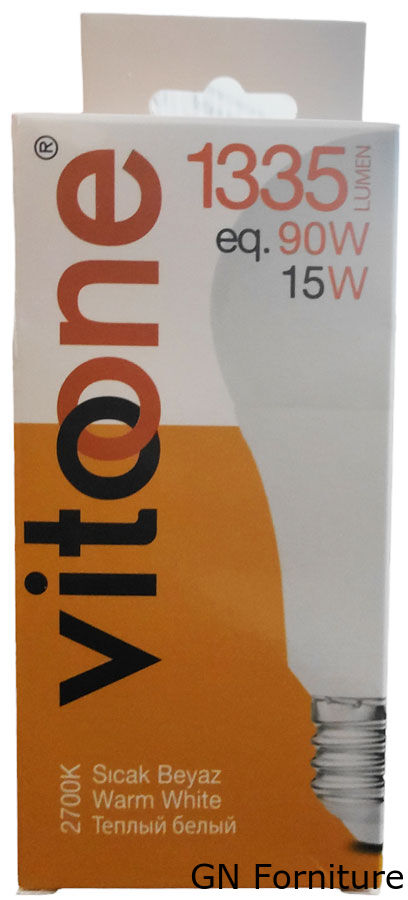 Le LAMPADINE LED della serie BASIS con corpo in plastica e alluminio e diffusore in policarbonato offrono prestazioni di illuminazione di 1335 Lm e una durata di 15000 ore. Questo modello da 15 W include LED da 2700 K (BIANCO CALDO) e attacco E27 con un angolo di illuminazione di 270°.