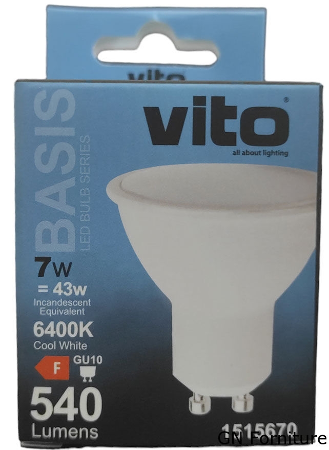 Le LAMPADINE LED della serie BASIS con corpo in plastica e alluminio e diffusore in policarbonato offrono una potenza di illuminazione di 540 Lm e una durata di 10.000 ore. Questo modello da 7 W include LED da 6.400 K (BIANCO FREDDO) e attacco GU10 con un angolo di illuminazione di 120°.
