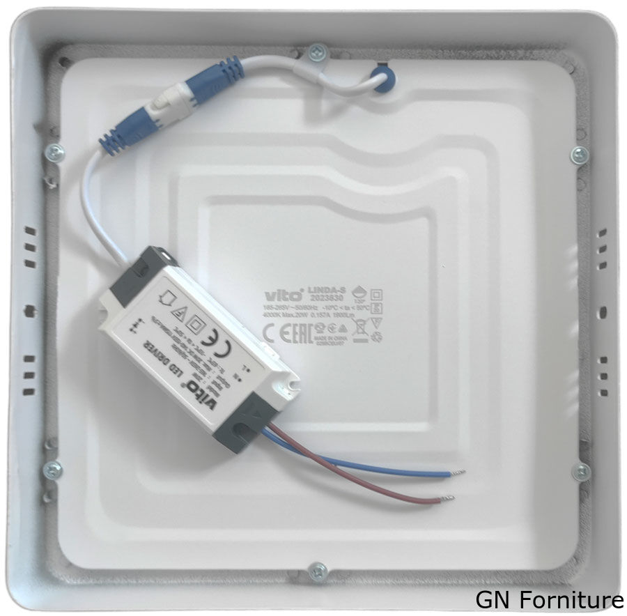 L'ILLUMINAZIONE DA SOFFITTO A LED serie LINDA con corpo in alluminio e diffusore in PP offre prestazioni di illuminazione di 2000 Lm e una durata di 50000 ore. Questo modello da 20 W include LED da 6000 K (BIANCO FREDD) con un angolo di illuminazione di 120°.