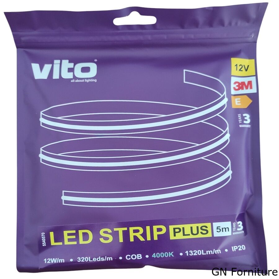 Striscia LED 12V 320xCOB 12W IP20 luce naturale 4000K 5m