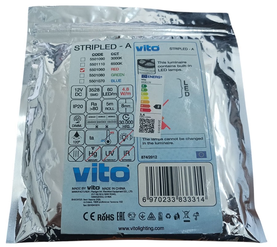 Striscia LED flessibile da 5 metri con luce rossa, ideale per decorazioni luminose, illuminazione di ambienti interni, vetrine o progetti fai-da-te. Funziona a bassa tensione 12V DC ed è facile da installare e tagliare a misura.