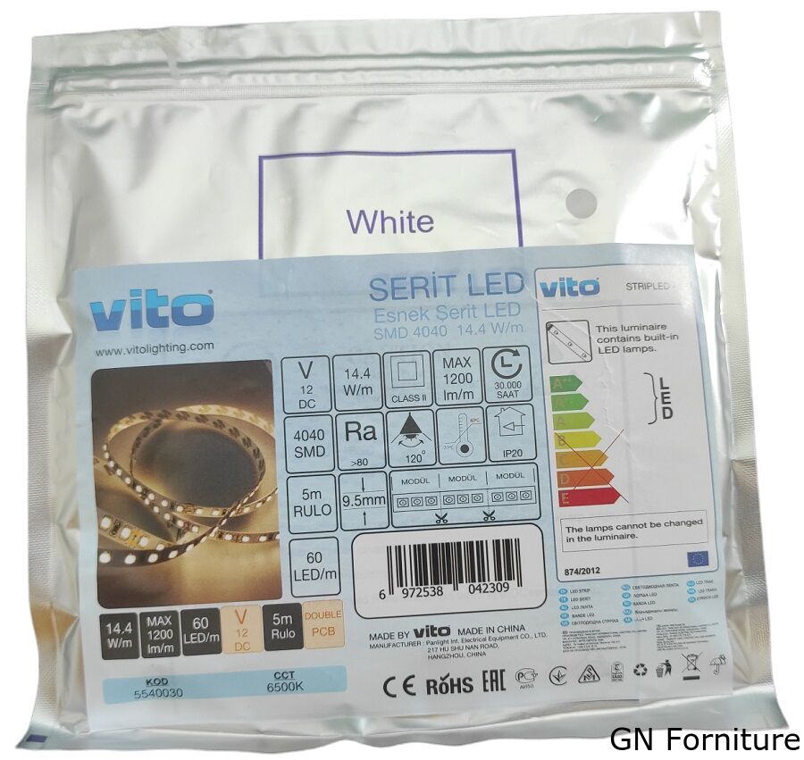Striscia LED 14,4W/m 1200lm luce fredda 6500K 12V IP20 5m Vito