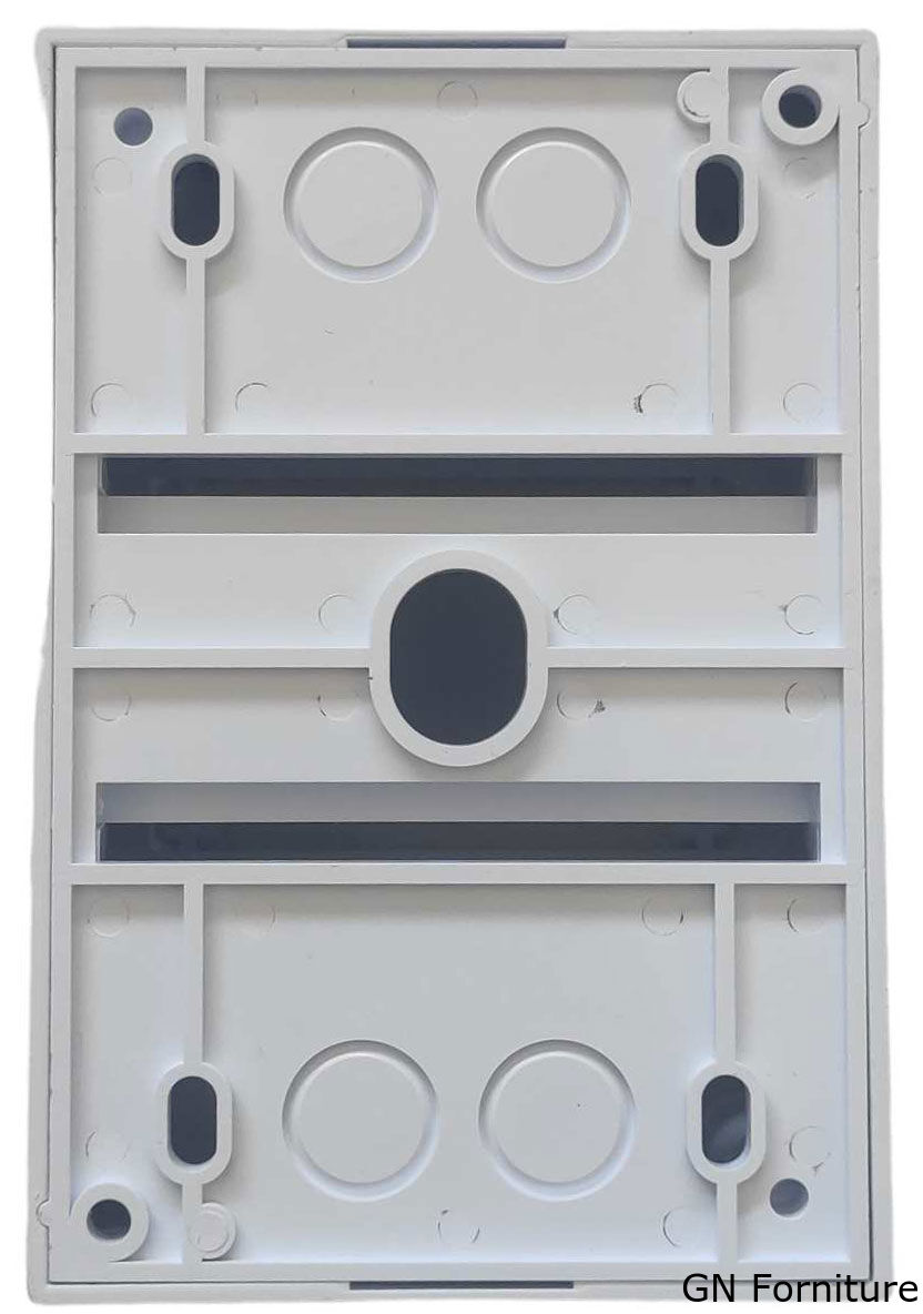 Scatola modulare per ospitare quadri elettrici ed elementi elettrici (differenziali, magnetotermici ...), di 4 moduli, montaggio su superficie o parete. Tipo monoblocco senza porta. Realizzato in materiale plastico, fornisce una classe di protezione II e un grado di protezione IP20.