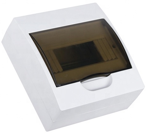 Centralino da parete per 8 moduli DIN, progettato per applicazioni civili, quadri secondari o piccoli impianti elettrici. La porta trasparente fumé consente una rapida ispezione visiva dei dispositivi, mantenendo ordine e protezione.