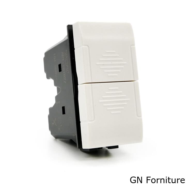 Moderno e funzionale interruttore doppio pulsante usato in impianti elettrici civili e professionali, modulo di comando tapparelle o altro...Prodotto di ottima qualità per la tua casa e per il tuo impianto elettrico.