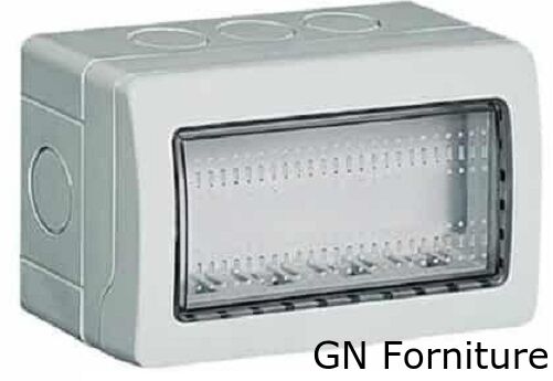 Custodia idrobox 4 moduli, realizzata in materiale termoplastico, con grado di impermeabilità IP55.