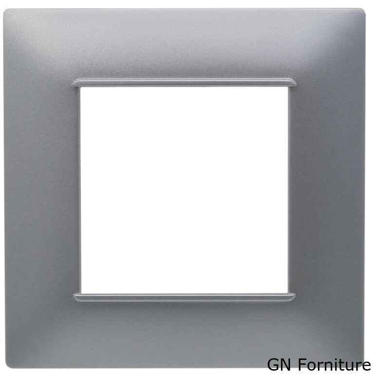 Placca 2 posti argento Soft Touch compatibile Vimar Plana