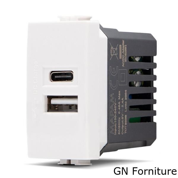 Doppia presa USB USB A - USB tipo C 5V 2.4A compatibile Vimar Plana