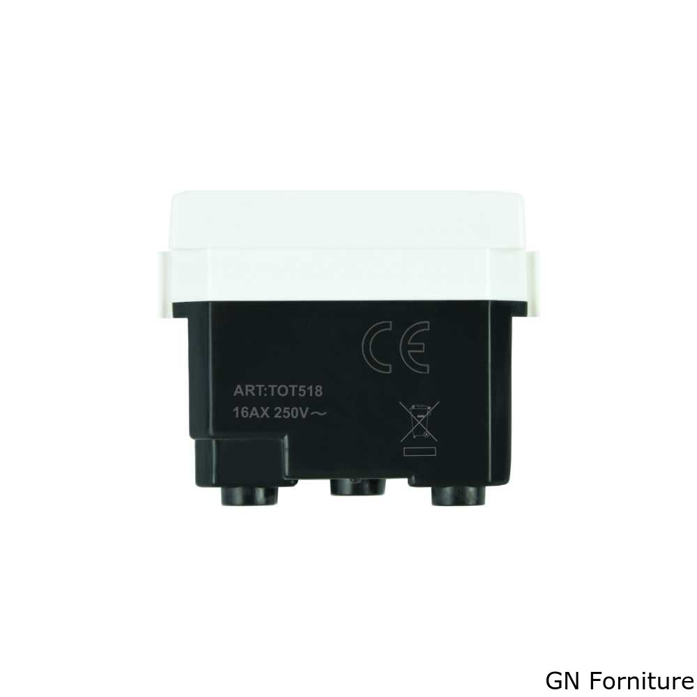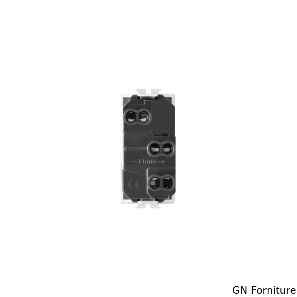 Presa bivalente o bipasso standard Italia 2P+T. E' un mix tra due prese, consente di inserire sia spine da 10A (spina piccola) che spine da 16A (spina grande). E' dotata di alveoli schermati dove collegare la maggior parte di utilizzatori come forno, televisione, multiprese, ecc.