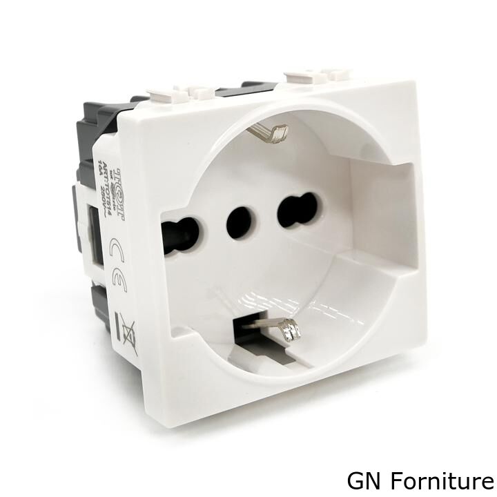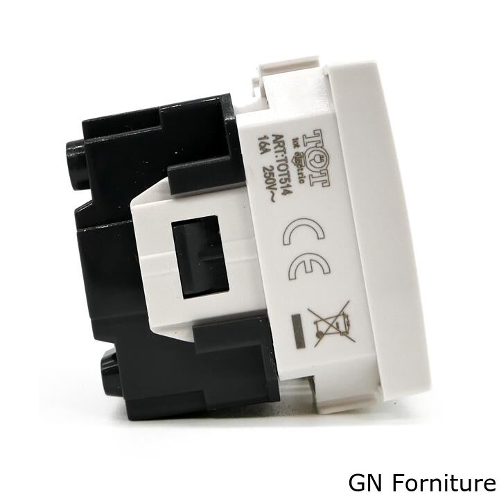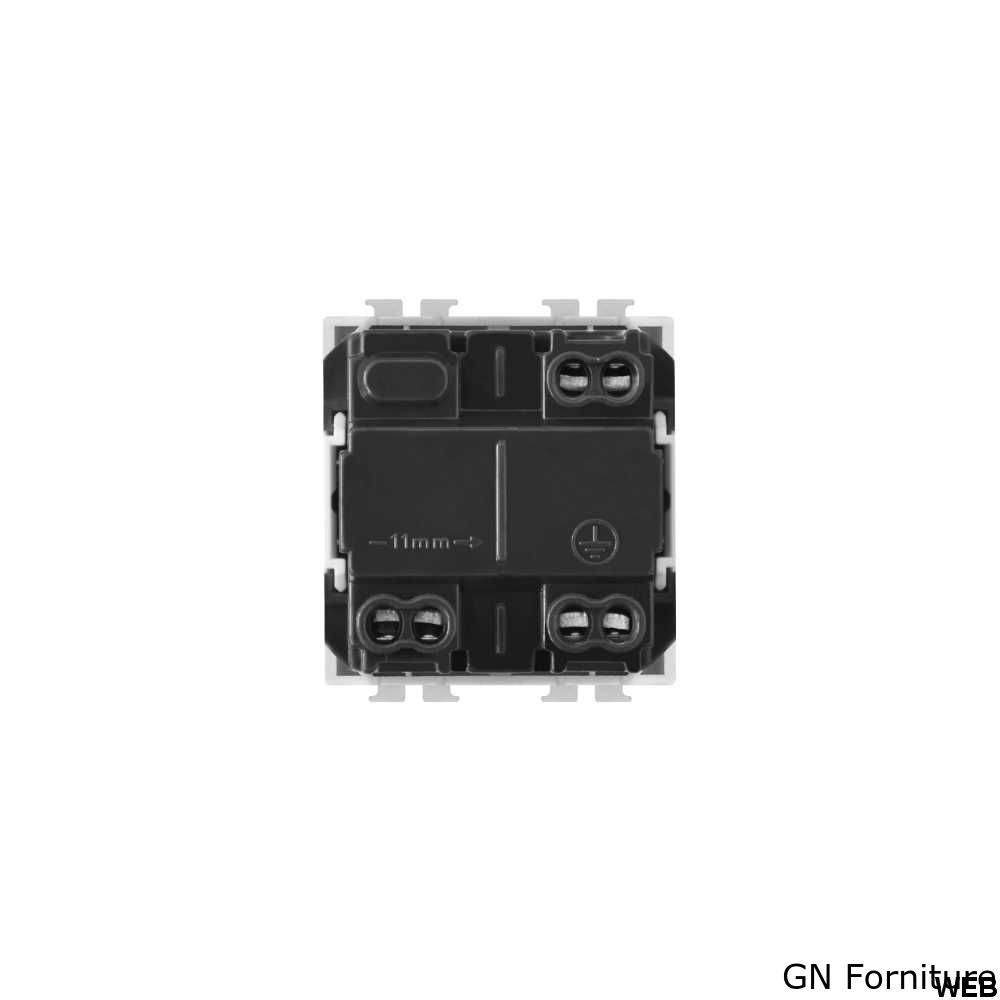 Ha un valore di assorbimento nominale di 16A e occupa lo spazio di due frutti nella scatola.