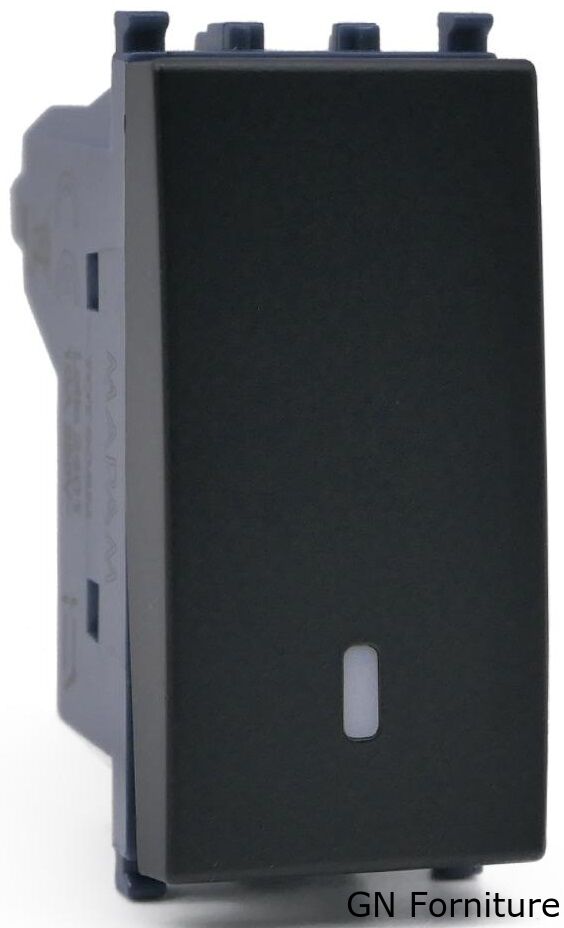 Pulsante unipolare nero con spia compatibile Vimar Arké
