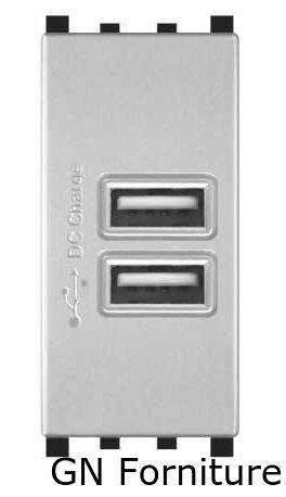 Alimentatore doppia presa USB 90-265V output 5V 2A grigio compatibile Vimar Plana