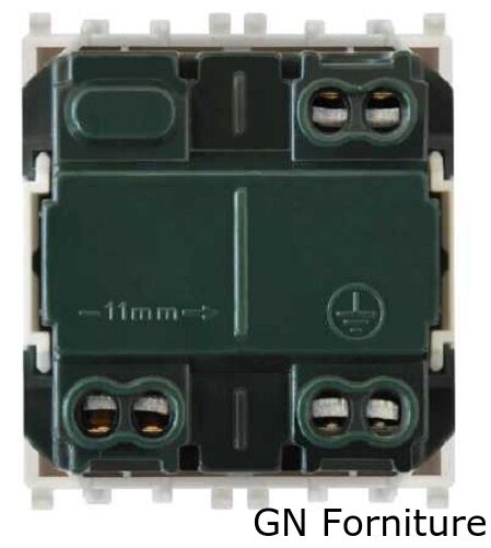 La spina schuko ha un valore di assorbimento nominale di 16A e occupa lo spazio di due frutti nella scatola.