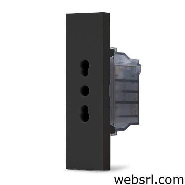 Presa elettrica bipasso da incasso 10–16A progettata per garantire compatibilità con spine standard italiane da 10A e 16A in un unico modulo. La finitura nera della serie Zen offre un’estetica moderna e minimale, ideale per impianti civili contemporanei.