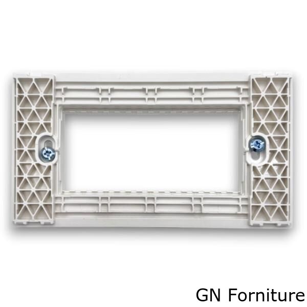 Supporto modulare da incasso a 4 posti progettato per l’installazione di frutti elettrici della serie Zen. Consente un fissaggio solido e preciso dei moduli all’interno delle scatole da incasso, garantendo allineamento corretto, stabilità meccanica e facilità di montaggio.