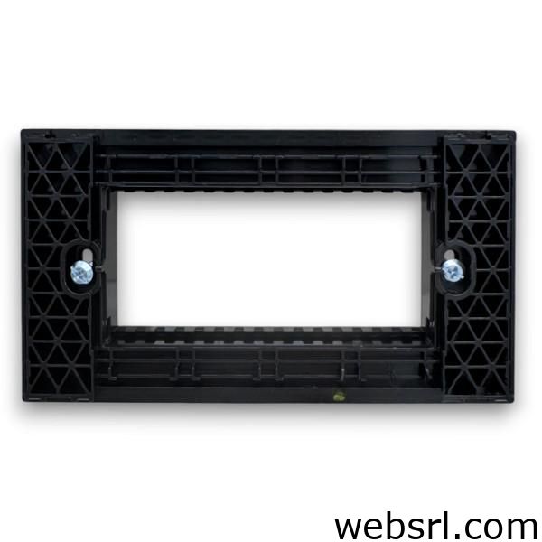Supporto modulare da incasso a 4 posti progettato per l’installazione di frutti elettrici della serie Zen. Consente un fissaggio solido e preciso dei moduli all’interno delle scatole da incasso, garantendo allineamento corretto, stabilità meccanica e facilità di montaggio.
