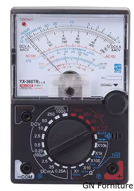 Il multimetro analogico YX-360TRE-L-B è uno strumento di misura versatile e preciso, ideale per professionisti e appassionati di elettronica. Questo dispositivo è in grado di misurare con accuratezza tensioni, correnti e resistenze in circuiti elettrici. Caratterizzato da un display analogico con scala graduata, permette di ottenere letture dirette di grandezze elettriche. Il multimetro YX-360TRE-L-B è dotato di una protezione contro sovraccarichi e una struttura compatta che lo rende facile da trasportare e utilizzare in qualsiasi ambiente di lavoro. Supporta la misura di tensioni alternate e continue e la prova di diodi, con una robusta costruzione adatta per l'uso quotidiano.