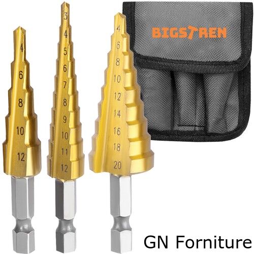 NUMERAZIONE LEGGIBILE – le frese sono a gradini, ognuna di esse ha una numerazione. È perfettamente leggibile, grazie al quale possiamo facilmente praticare un foro della larghezza desiderata. Il set comprende tre punte per realizzare fori di diverse dimensioni.