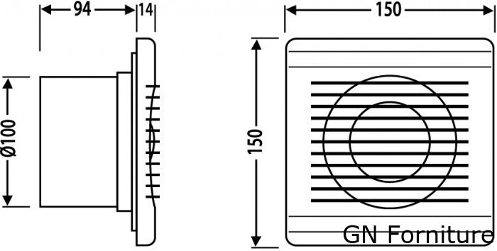 Aspiratore 12W 100m3/h 35Db Φ100x60mm Vito