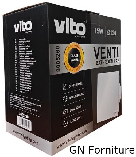 L’aspiratore da bagno Vito Venti-GL120 è una soluzione elegante e funzionale per la ventilazione di bagni, WC e locali di servizio. Il frontale piatto in vetro bianco dona un aspetto moderno e raffinato, ideale per ambienti dove anche il design ha la sua importanza. Grazie al motore con cuscinetti a sfera, assicura una lunga durata nel tempo, funzionamento affidabile e bassa rumorosità, risultando adatto all’uso quotidiano sia a parete che a soffitto.