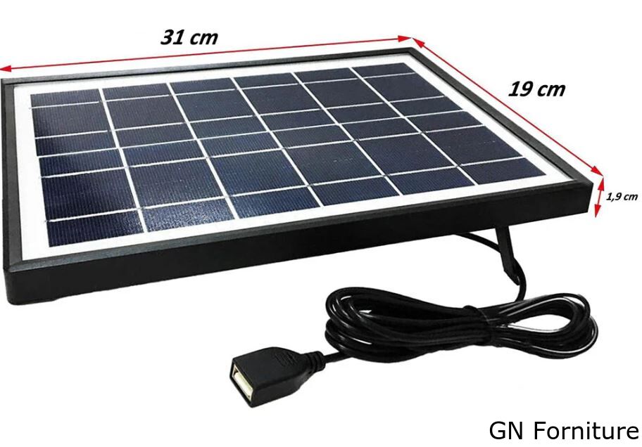 Il pannello è dotato di porta USB singola e include un cavo multipolare universale, compatibile con la maggior parte dei dispositivi presenti sul mercato.