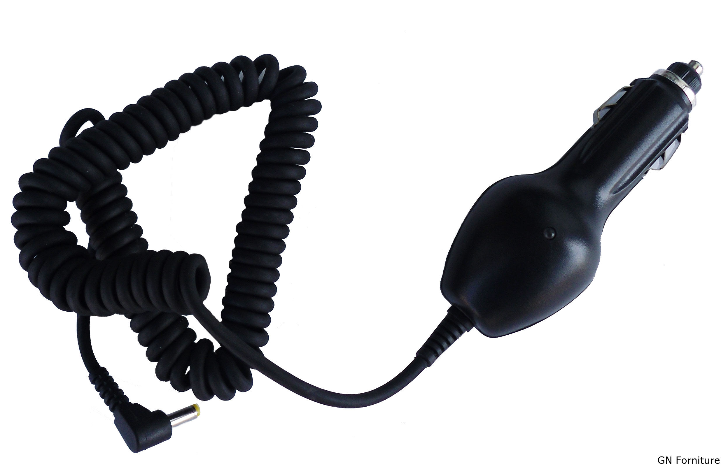 Alimentatore da auto per presa accendisigari 12V con connettore 3.2/1.2 mm ("+" al centro) ed uscita 5V 1A, cavo estensibile spiralato max 1,5 metri.
