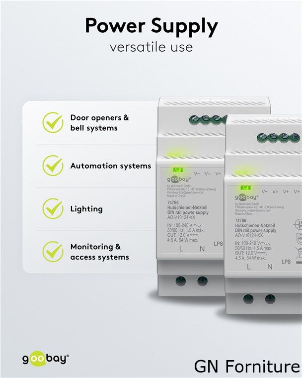 - L'alimentatore da 12 V è adatto per l'automazione degli edifici, ad es. per sistemi complessi di citofoni, LED, illuminazione, monitoraggio e sistemi di allarme