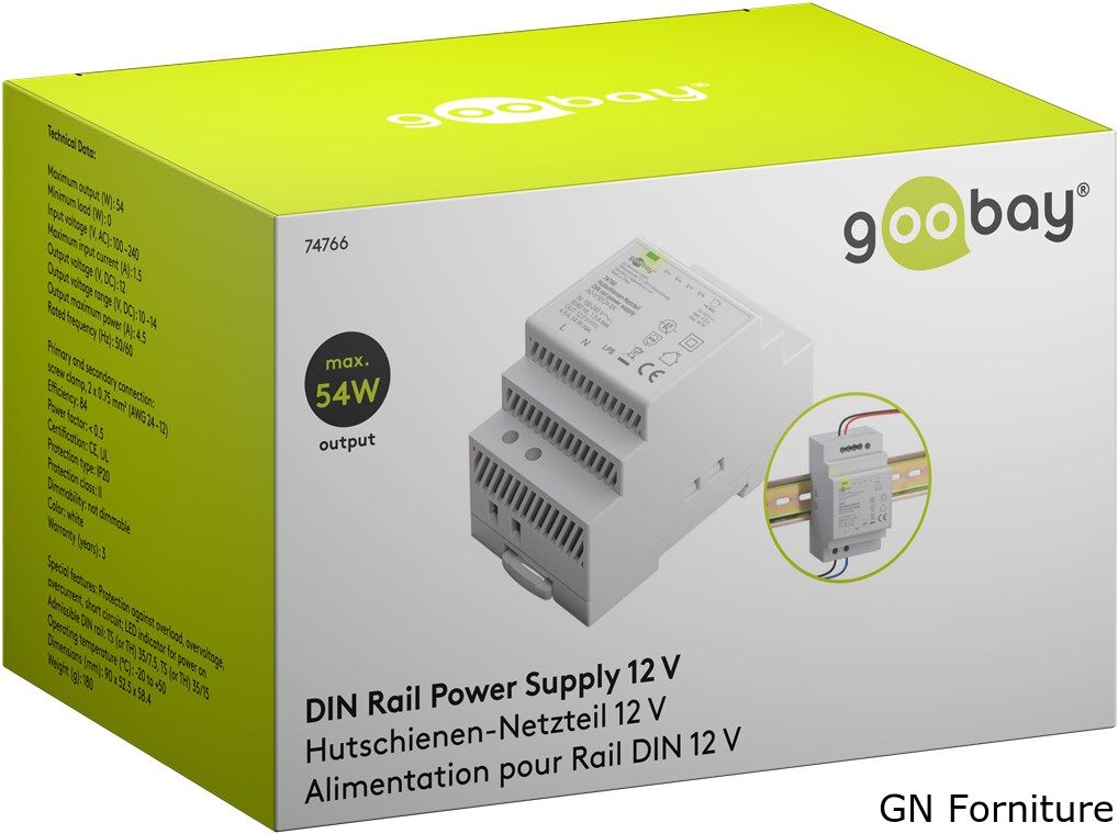 Alimentatore per guida DIN 12VCC 4,5A 44W