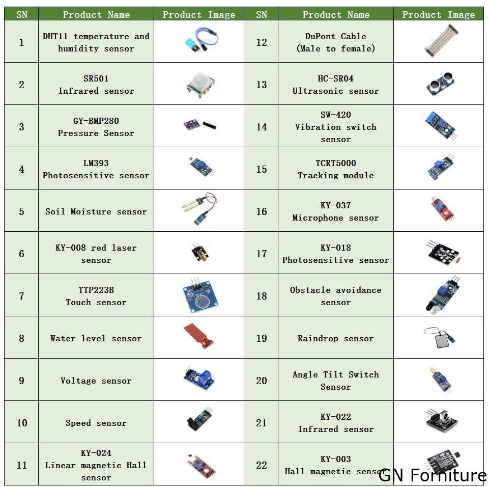 - Tutti i kit di sensori sono accuratamente selezionati e testati. Rimossi i moduli inutili e meno usati. Eliminiamo molti sensori obsoleti che hanno bassa affidabilità e funzione duplicata come altri sensori nel kit.