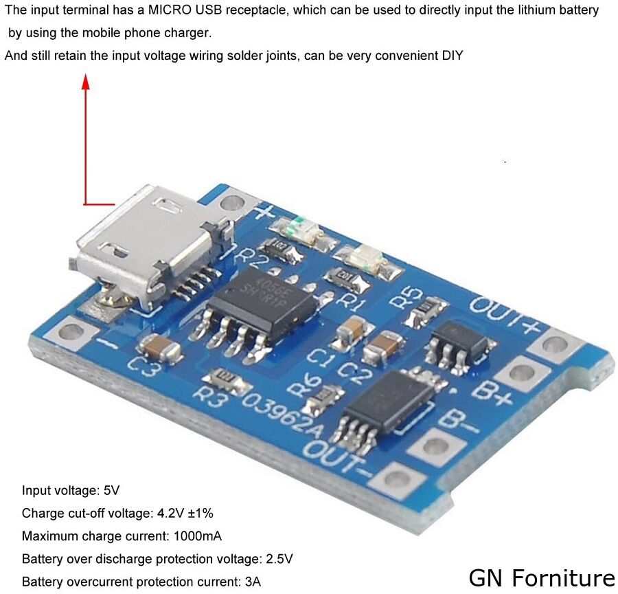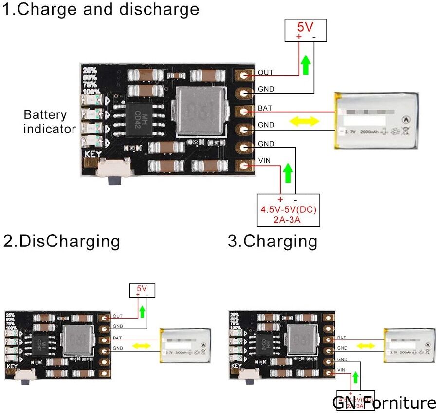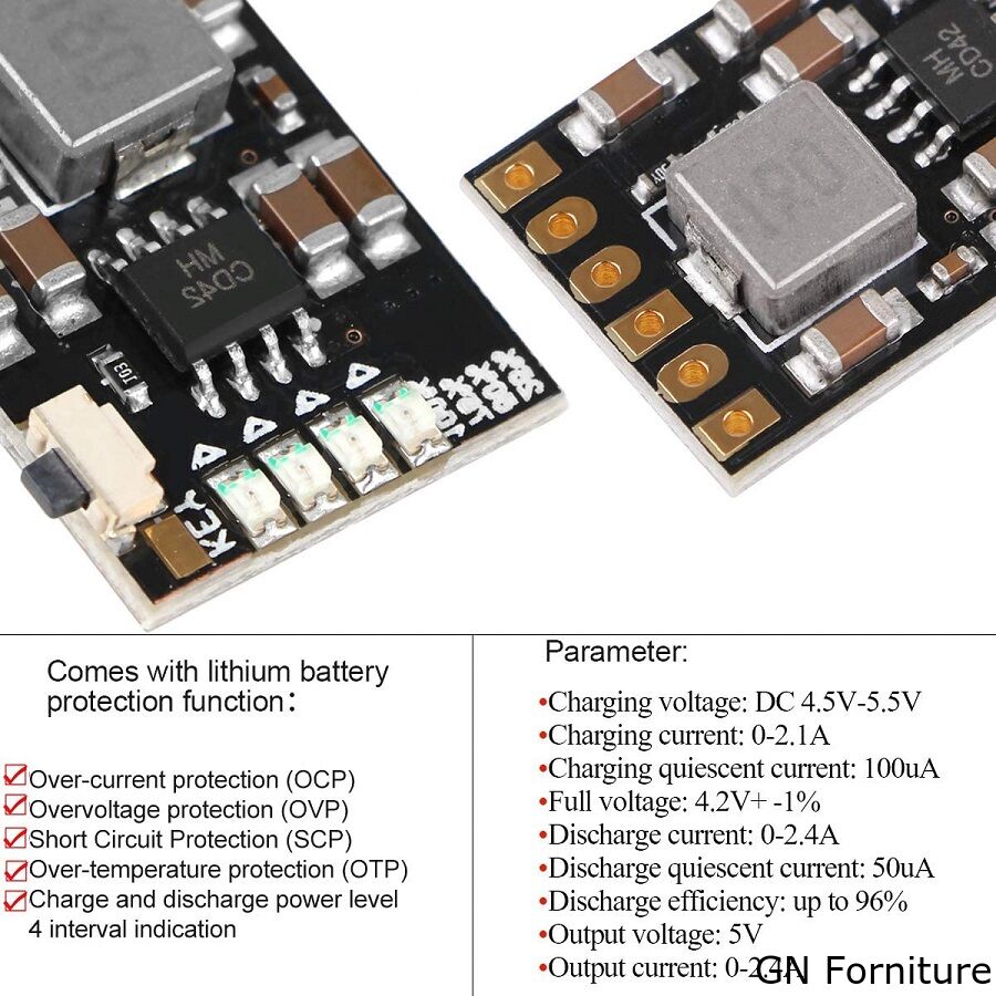 - 4 in 1 ricarica / scarica / protezione batteria al litio / modulo indicatore livello batteria. Funzione di protezione della batteria al litio: protezione da sovracorrente, sovratensione, sovratemperatura, corto circuito.