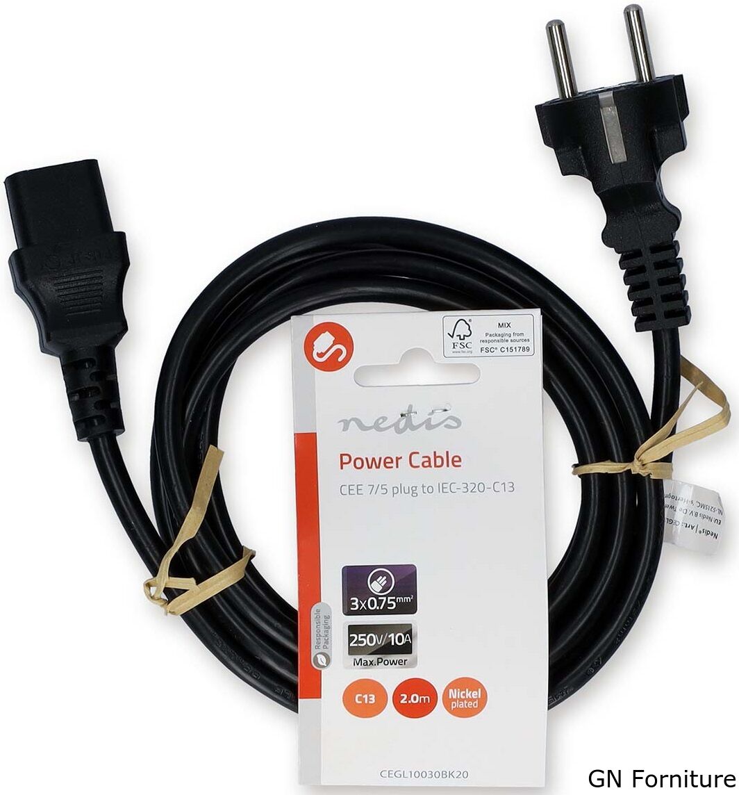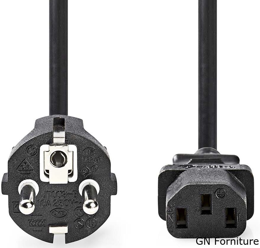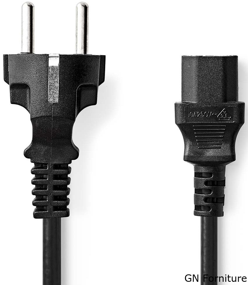 Questo cavo di alimentazione da 10 A con connettore Plug With Earth Contact è adatto per collegare dispositivi alimentati dalla rete elettrica, come i PC, alla presa di corrente a muro.