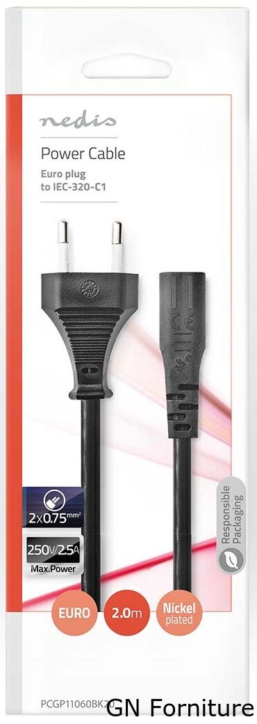 Questo cavo di alimentazione con connettore Euro è l'ideale per collegare dispositivi alimentati a corrente alla presa a muro.