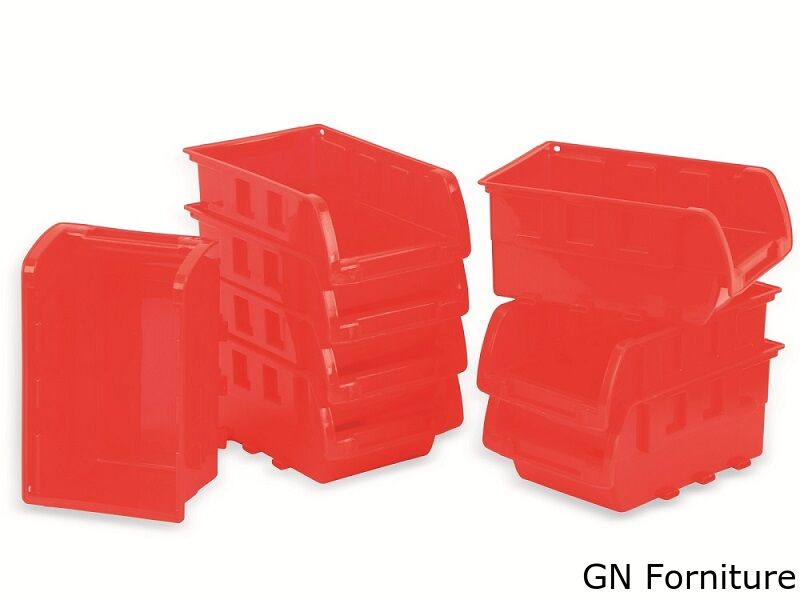 Pratici contenitori impilabili in plastica resistente agli urti per riporre piccoli pezzi come manopole a vite, ecc.