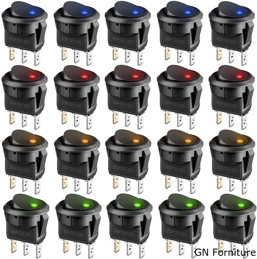 - 20 interruttori a bilanciere tondi (5 Rossi, 5 Verdi, 5 Gialli, 5 Blu)