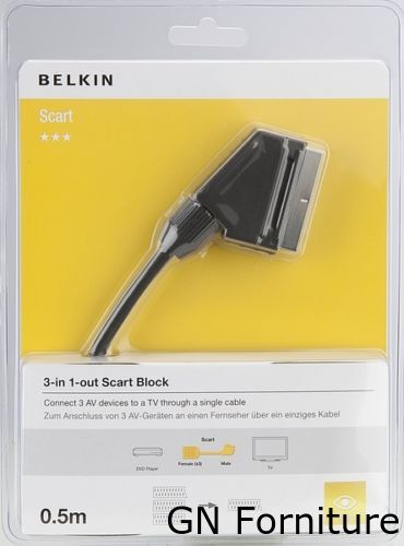 Questo adattatore 3-in-1Scart permette di collegare diversi dispositivi video come i DVD, videoregistratori, ricevitori satellitari e altri con connettore SCART ad un singolo TV.