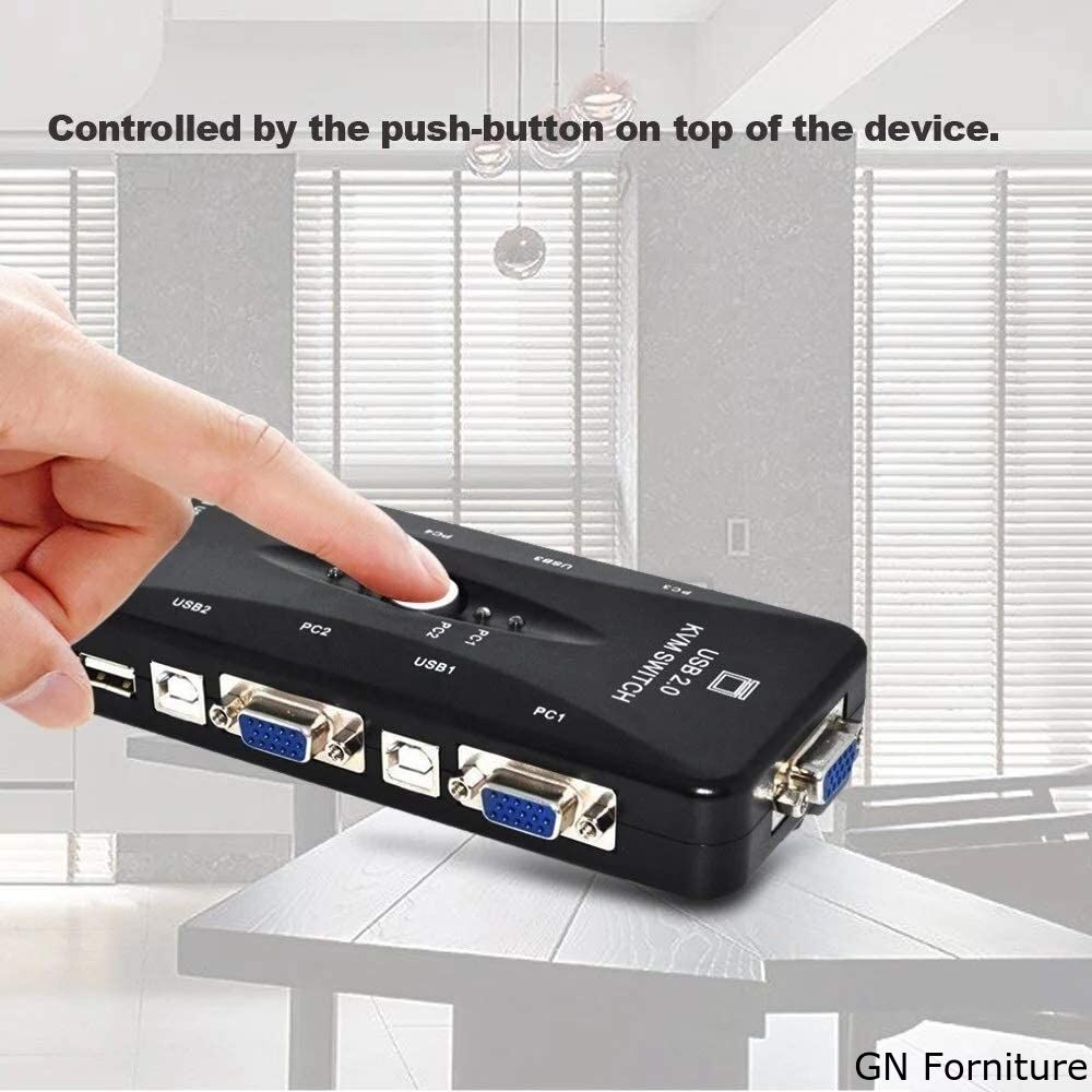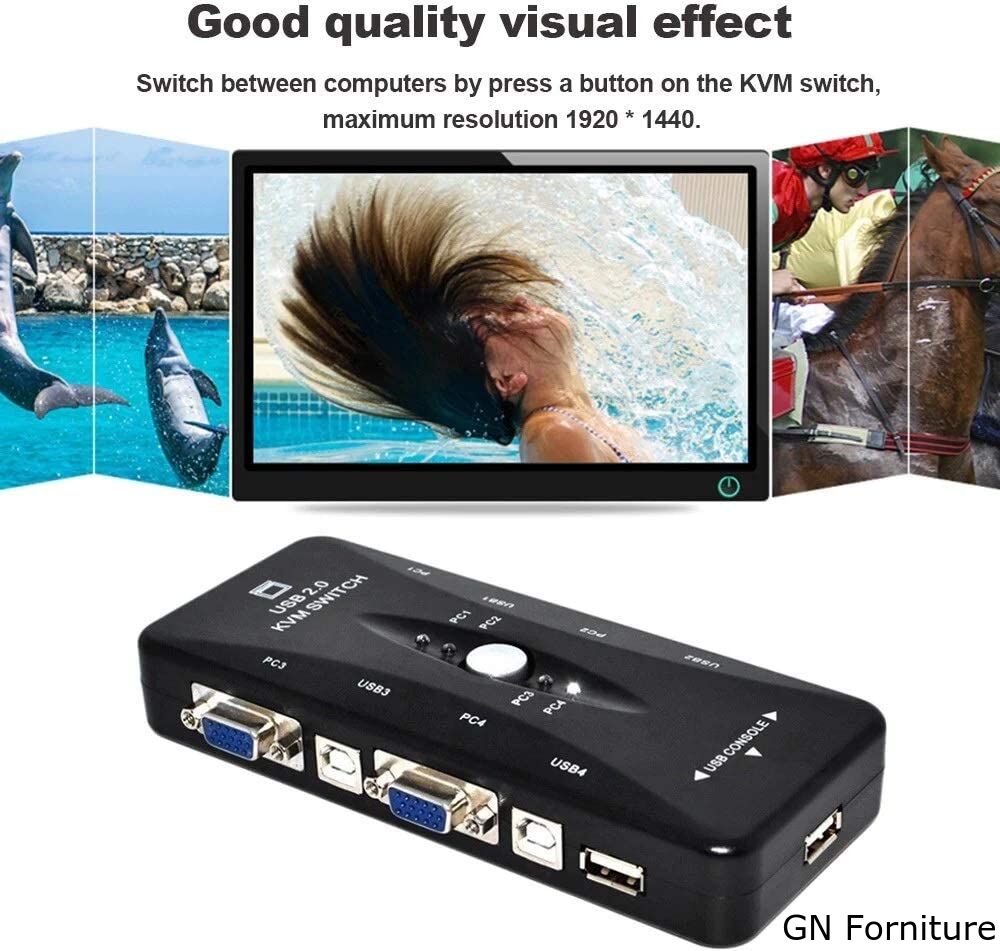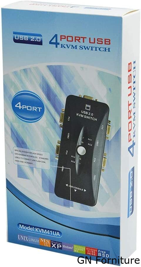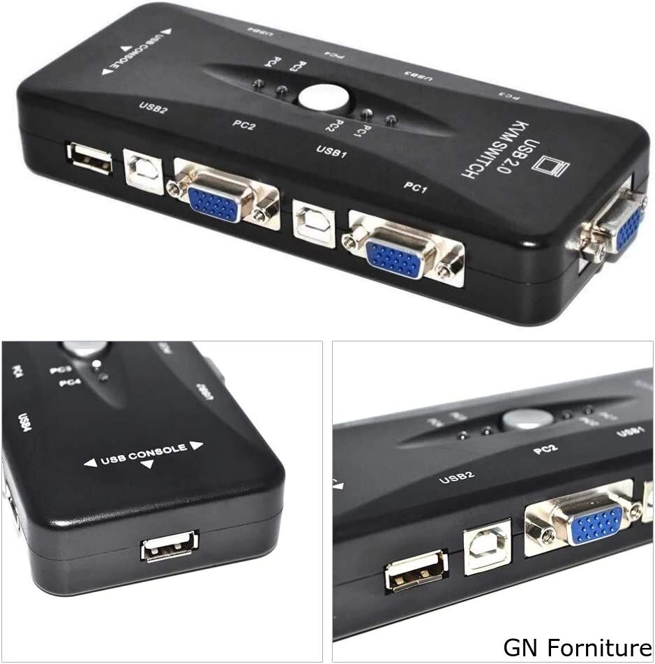 - Controlla 4 PC su 1 monitor: KVM Switch Box 4 porte consente di collegare tastiera USB, mouse USB e monitor a 4 PC, controllabili facilmente tramite il pulsante sulla parte superiore. È compatibile con 98/98SE/2000/ME/NT/XP/VISTA/XP 64bit/Vista 64bit/Win 7/Netware/Unix/Linux/Mac