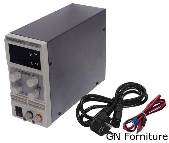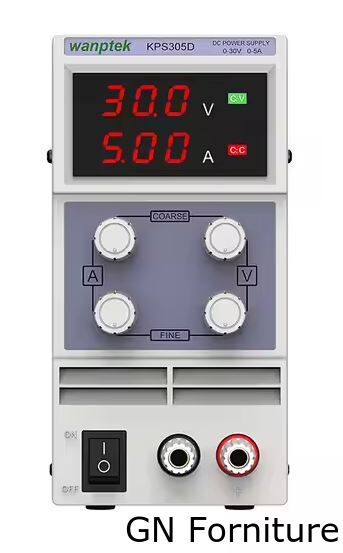 L'alimentatore da laboratorio stabilizzato Wanptek con regolazione variabile della tensione nell'intervallo da 0 a 30 V e della corrente nell'intervallo da 0 a 5 A. È dotato di un display LCD e di una ventola che assicura un raffreddamento adeguato. L'alimentatore può funzionare in due modalità: C.V. (tensione di uscita costante) e C.C. (corrente di carico costante). È dotato di protezione contro i cortocircuiti, il surriscaldamento e il sovraccarico.