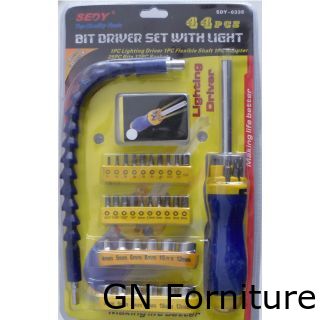 26 inserti da 25mm: 3 x PH: 0#, 1#, 2# - 3 x Flat: 1/8", 3/16", 1/4" - 5 x Torx T10, T15, T20, T25, T30 - 2 x squares: S1, S2 - 12 x Hex : 3/32", 1/8", 5/32", 3/16", 7/32", 1/4", 5/64", 3/32", 1/8", 5/32", 3/16", 1/4" - 1 x Adattatore 1/4".