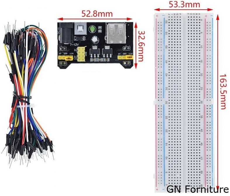 Kit breadboard MB102 830 punti con cavi jumper e modulo di alimentazione