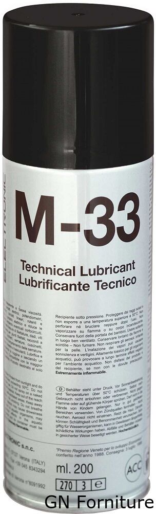 M-33 Lubrificante tecnico multiuso spray, trasparente e a bassa viscosità.