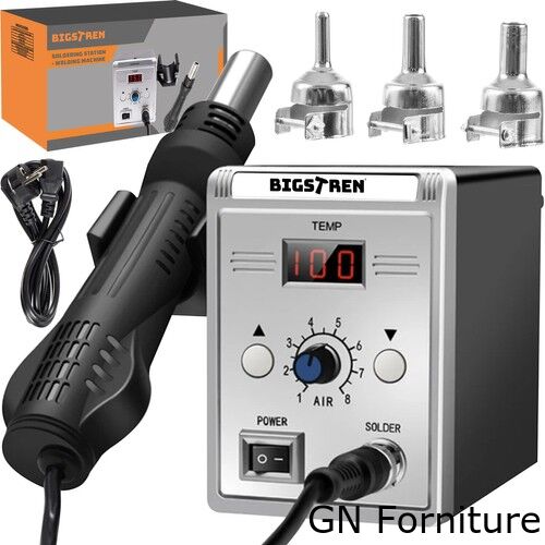 REGOLAZIONE DELLA TEMPERATURA E DEL FLUSSO D'ARIA - il saldatore ad aria calda ha temperatura e flusso d'aria regolabili, che consentono di regolare la quantità e la potenza del calore generato dallo strumento. Ciò consente una regolazione precisa della temperatura in base all'applicazione e al materiale specifici. La temperatura minima è di 100 gradi e la massima è di 500.