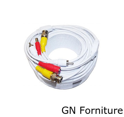 Cavo RCA, Audio/ Video BNC con 2 jack di entrate e 2 di uscita + prolunga per l'alimentatore. Integra sia il cavo di alimentazione che il video e l'audio, in modo da poter collegare a distanza telecamere anche in punti dove non c'è corrente elettrica.