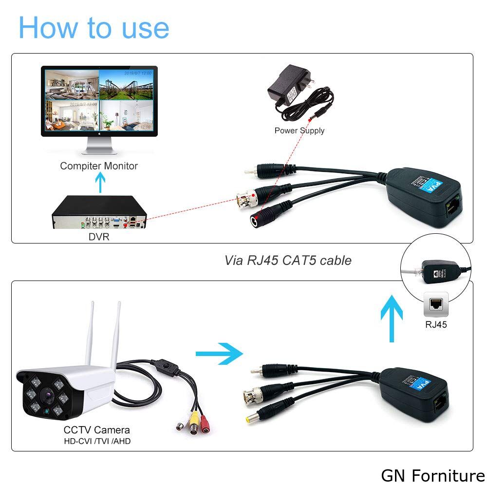 Ampiamente usato: Trasmissione video tramite UTP CAT5, compatibile con dispositivi video CVI, TVI, CVBS e AHD, adatto per telecamere CCTV 720P/960P/1080P Max.2MP, monitor, schede DVR e registratori, ecc.