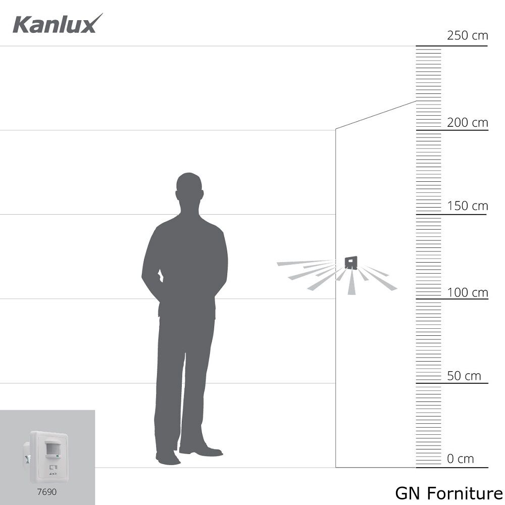 Kanlux MERGE JQ è il sensore di movimento con un campo massimo di rilevamento del movimento pari a 5 metri. Il suo angolo orizzontale d’esercizio è di 360 gradi. È possibile regolare sia il tempo di illuminazione che il livello di illuminamento esterno a cui il sensore funziona.