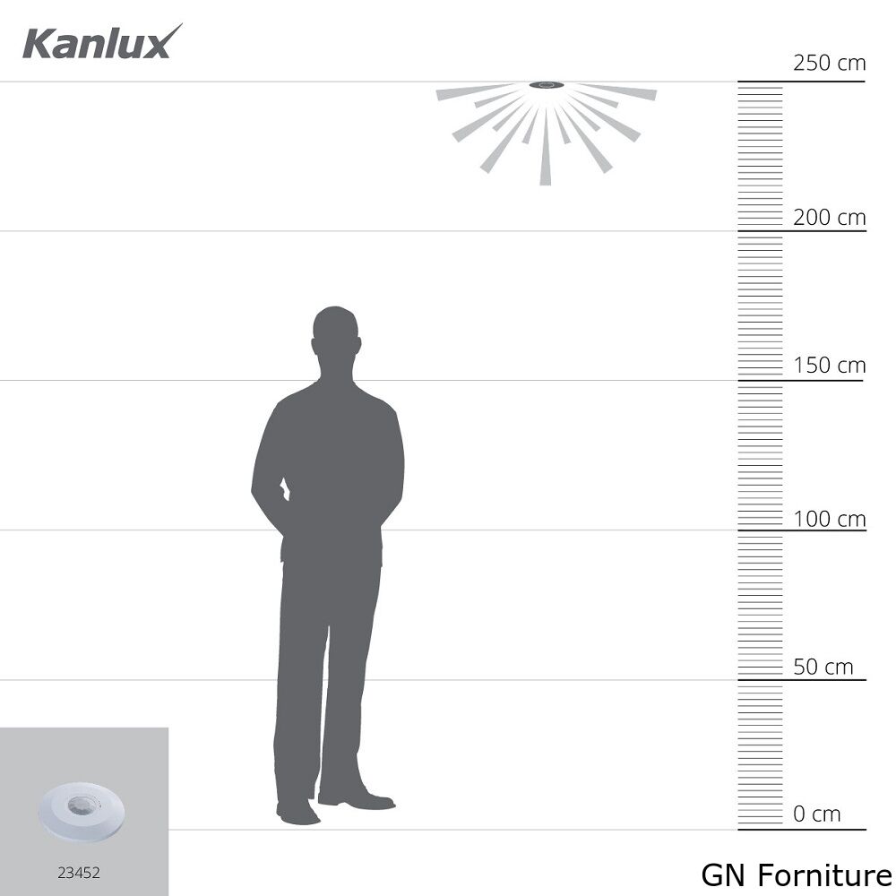 Kanlux ZONA FLAT è il sensore di movimento con un campo massimo di rilevamento del movimento di 8m. Invece il suo angolo orizzontale massimo d’esercizio è di 360 gradi. Con il sensore ZONA è possibile regolare il tempo di illuminazione da 10sec a 15min e impostare anche il livello di illuminamento esterno nell’ambiente in cui il dispositivo funzionerà.