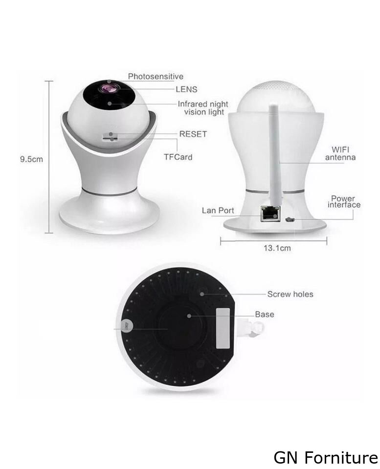 Questa telecamera è senza fili e adatta per gli interni, con un meccanismo di motorizzazione(355°orizzontale 120°verticale). Oltre alla ricezione WiFi è possibile collegare un cavo ethernet per il segnale WiFi.