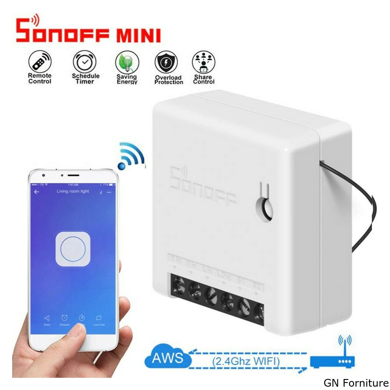 - Controllo di 1 LUCE tramite SmartPhone app eWelink Amazon Alexa, Google Home e nest