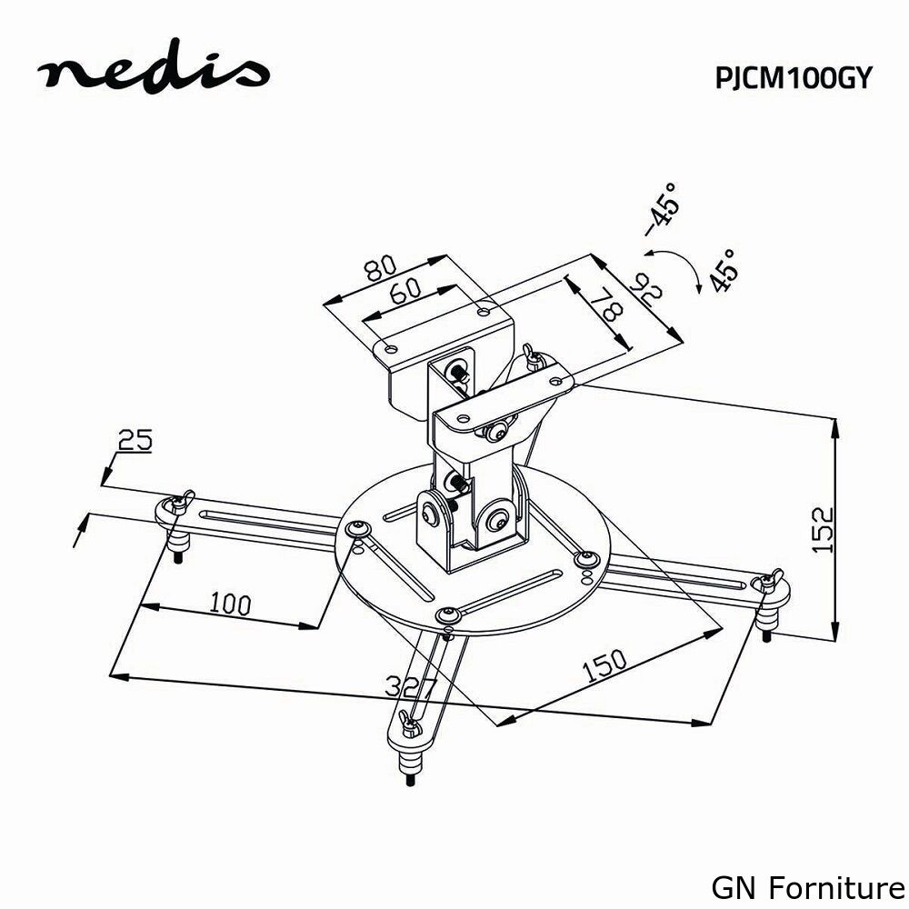Questo supporto è ideale per l'installazione di un proiettore sul soffitto e per visualizzare immagini perfettamente angolari e stabili.