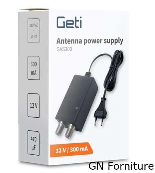 L'alimentatore per antenna GETI GAS300 è progettato per alimentare preamplificatori per antenna, amplificatori e hub attivi in piccoli sistemi di antenna che richiedono una tensione di 12 V CC. È dotato di prese per il collegamento di connettori F, il che rende l'assemblaggio del cavo coassiale molto più semplice e veloce. La luce LED indica la presenza della tensione di uscita e il corretto funzionamento dell'alimentatore.