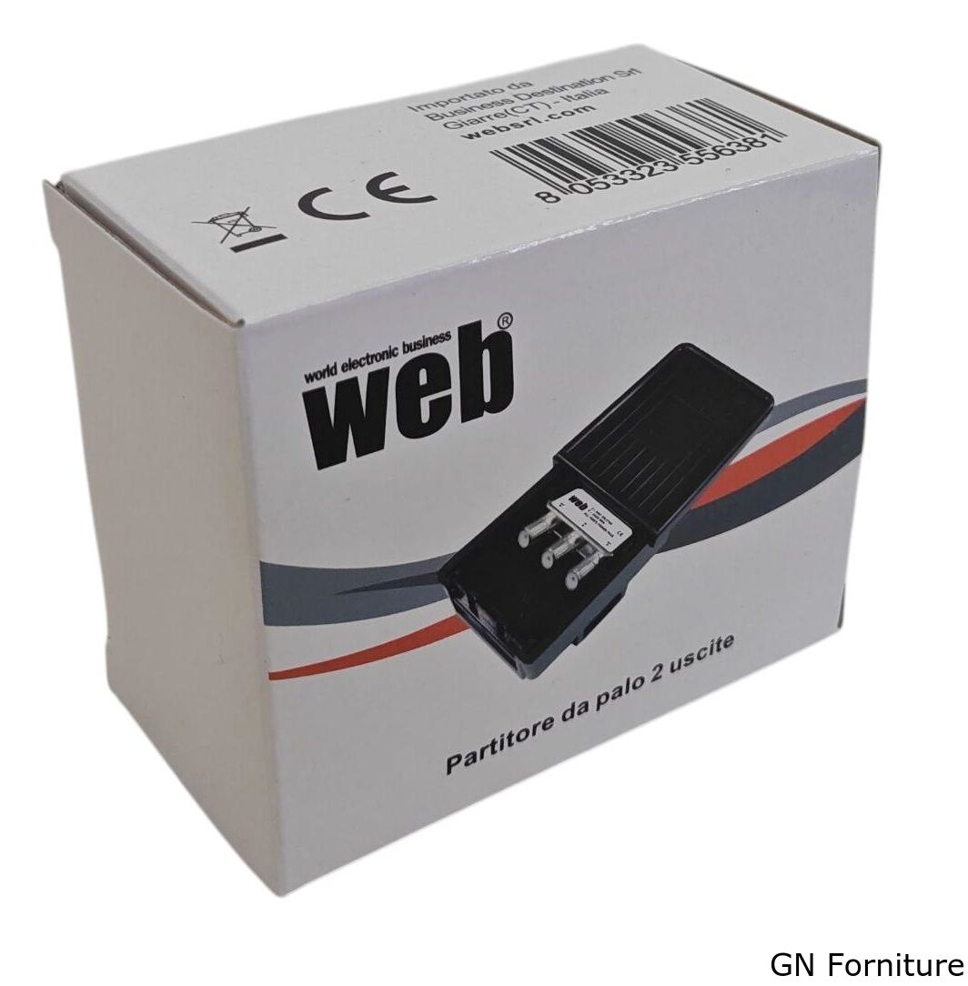 Il partitore da palo WEB a 2 uscite è progettato per la distribuzione del segnale TV e SAT con la massima affidabilità, garantendo basse perdite di inserzione e ottima schermatura contro le interferenze.